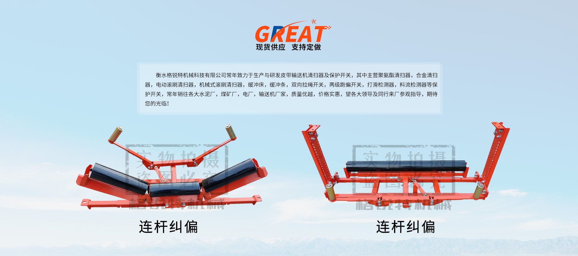 衡水格銳特機械科技有限公司常年致力于生產(chǎn)與研發(fā)皮帶輸送機清掃器及保護開關(guān),其中主營聚氨酯清掃器,合金清掃器,電動滾刷清掃器,機械式滾刷清掃器,緩沖床,緩沖條,雙向拉繩開關(guān),兩級跑偏開關(guān),打滑檢測器,料流檢測器等保護開關(guān),常年銷往各大水泥廠,煤礦廠,電廠,輸送機廠家,質(zhì)量優(yōu)越,價格實惠,望各大領(lǐng)導(dǎo)及同行來廠參觀指導(dǎo),期待您的光臨!!!